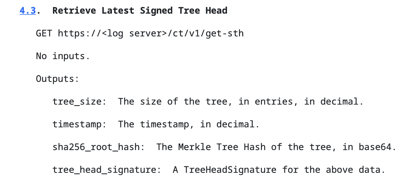 Рис. 2. Скриншот API RFC 6962 «Retrieve Latest Signed Tree Head».