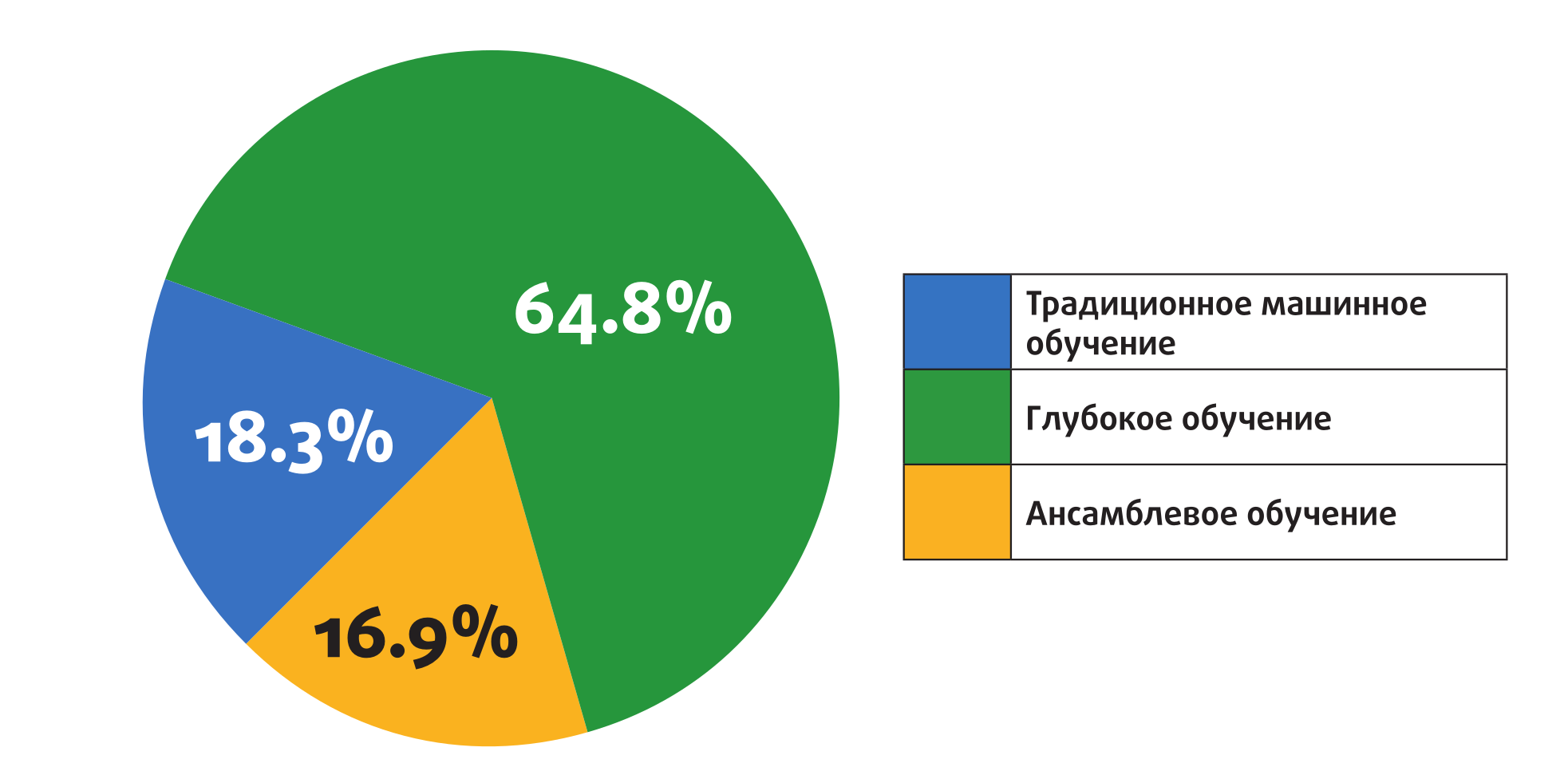 Рис. 4. Виды алгоритмов и их доля в обнаружении вредоносного ПО.