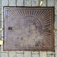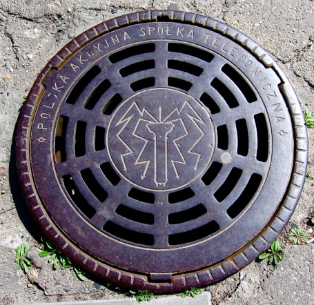 крышка люка PAST. https://pl.m.wikipedia.org/wiki/Plik:Studzienka_PAST_Warszawa.jpg