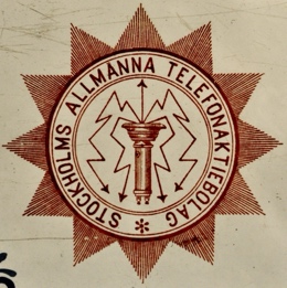 У Allmänna Telefonaktiebolag в центре изображена телефонная трубка, и стрелы, исходящие из неё, означают не электрические искры, а звук. Этот знак вписывается в звезду с 12-ю лучами, отрисованными расходящимися от центра штрихами.